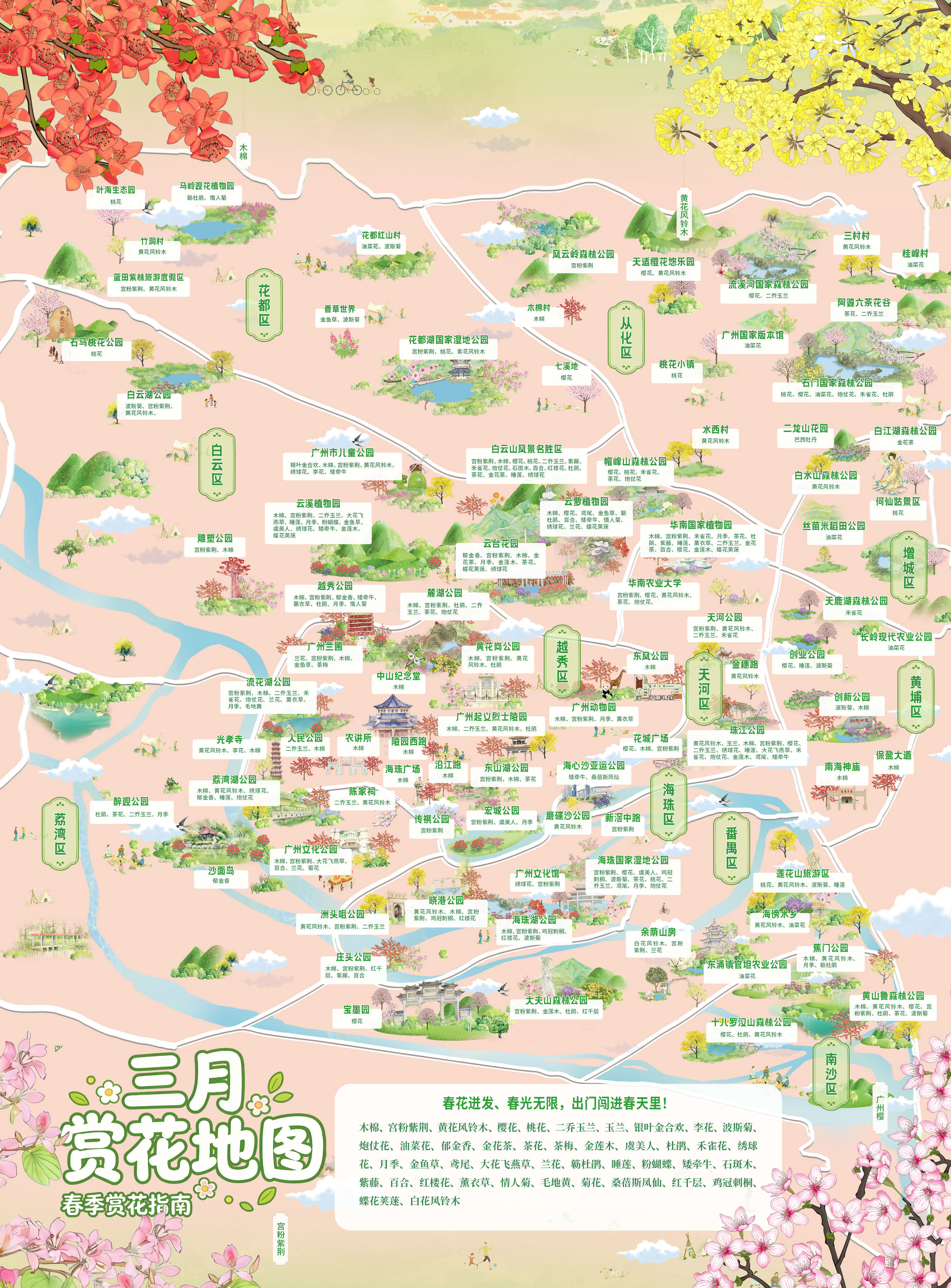 同程旅行数据显示,随着黄花风铃木、木棉花、宫粉紫荆逐渐进入盛花期,以及樱花、油菜花、簕杜鹃、格桑花等特色花种次第绽放,日韩在线3月份的岭南赏花季形成了“家门口赏花景,周边游观花海”的趋势。从家门口赏花的热度来看,市政公园、城市绿道等成为市民首选。