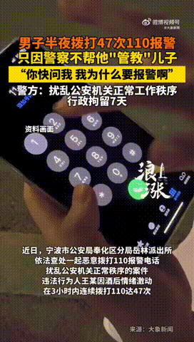 近日,宁波市公安局奉化区分局岳林派出所依法查处一起恶意拨打110报警电话,扰乱公安机关正常秩序的案件,违法行为人王某因酒后情绪激动,在3小时内连续拨打110达47次。“你快问我,我为什么要报警啊!”凌晨1点33分,宁波110指挥中心的电话再次响起。这已是违法嫌疑人王某(化名)当晚拨出的第47通报警电话。电话那头,醉意醺醺的王某不断对接警员发出“灵魂拷问”。而他反复拨打110的理由,荒唐得令人无语——仅仅因为警察不肯帮他“管教”儿子。