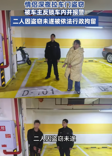 经查,案发当晚,李先生因临时回家取物,将车辆停放在小区停车场未锁车门。返回后,他发现一名男子在车内翻找财物,一名女子在车外望风,判定为“拉车门”盗窃。李先生随即锁闭车门控制住车内人员,并及时报警。
